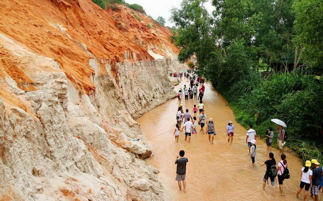 - Moreover, in the middle of the white san dune there is Lotus Lake – lotus is one of the famous flowers in Viet Nam. Not only visiting white sand dune, customers will have a chance to visit Yellow sand dune. the top of the Yellow one, you can see all of the scenery of Mui ne when you can discover the daily activities of the fishing farm. Then we will stop at the Fairy Stream where you can not miss in Mui Ne because of the really nice place.