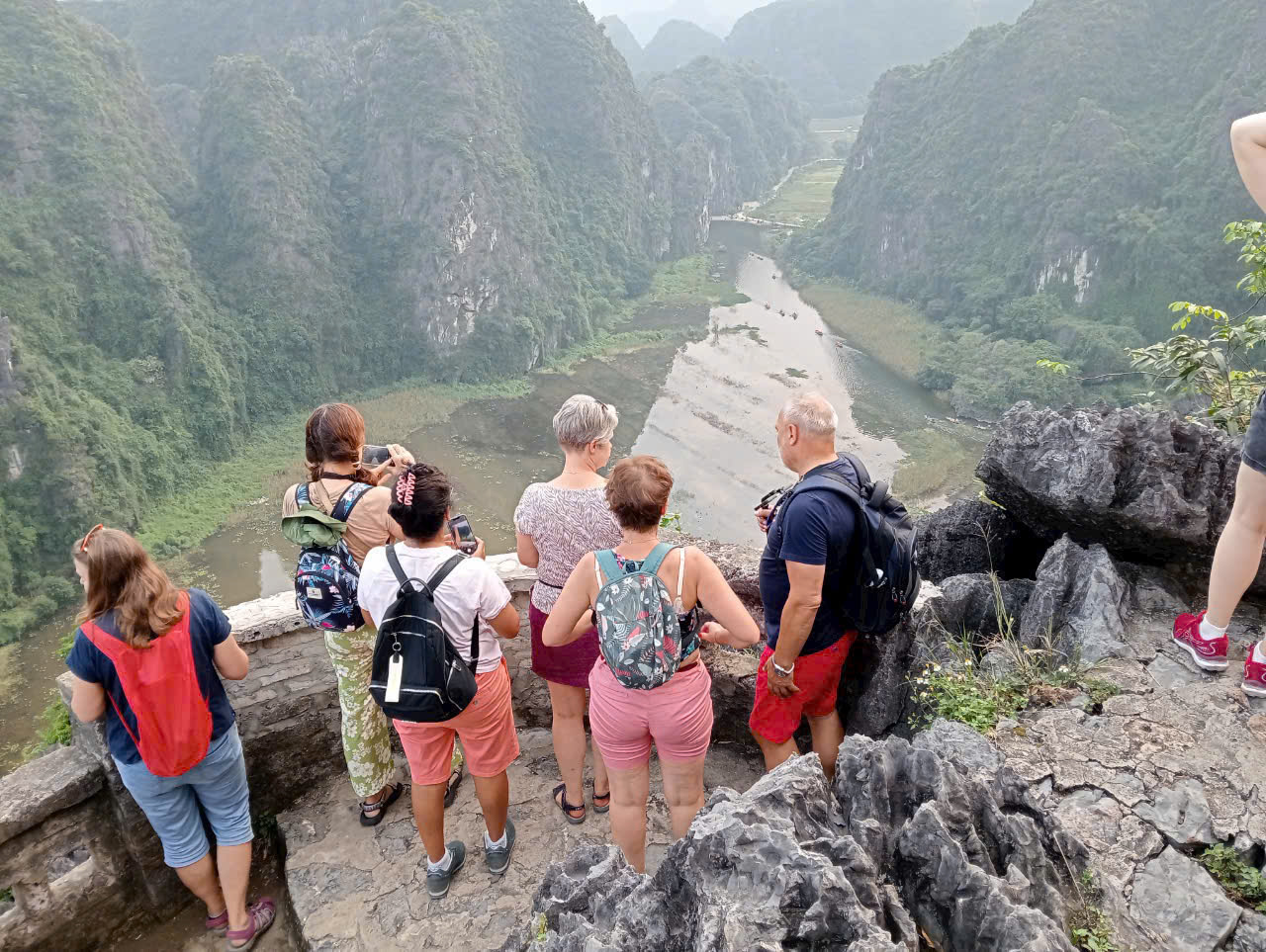 15h30: Get back to Limousine Bus then leave for Mua Cave (Dancing Cave). Walk up almost 500 steps, you can reach the top of Lying Dragon Mountain & have an amazing panoramic view of Tam Coc here