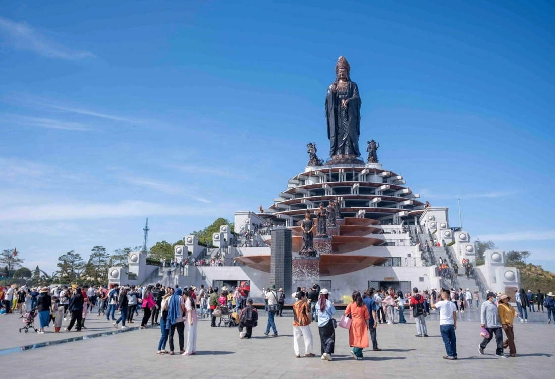 We visit the enchanting Di Lac area, where we'll enjoy a mesmerizing water fountain show and explore the interior levels of the Tây Bổ Đà Sơn Buddha Statue and learn about the