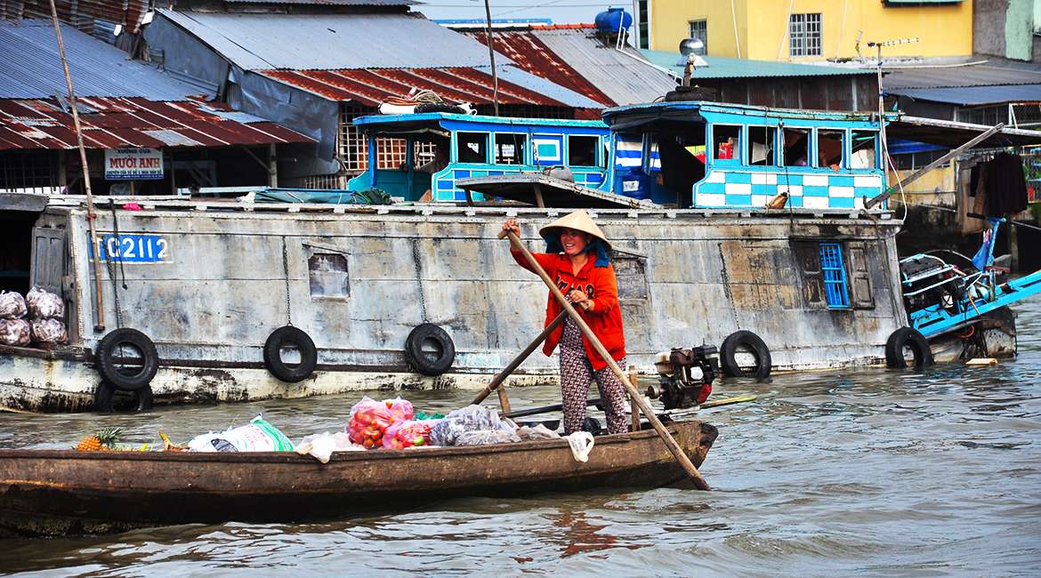 - 10.30am: Arrive in Cai Be, you’ll board a motorized boat that takes you to the floating market and spend time there for an interaction that you’ll see no where else in the world.