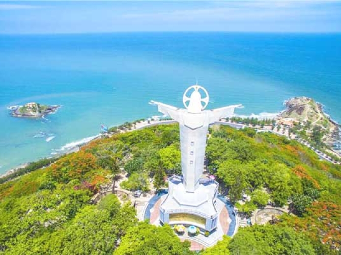 After lunch, we visit Jesus Christ Statue by walking up the 847 stairs and meeting the 32 meter-tall (105 feet) statue of Jesus Christ. Considered one of the tallest statues of Christ in Asia, its outstretched arms span a little over 18.4 meters. Originally started in 1972 but the construction was only completed in 1993. The adventurous are welcome to climb to the top of inside Christ' arms and enjoy the breathtaking panoramic view of Vung Tau city.