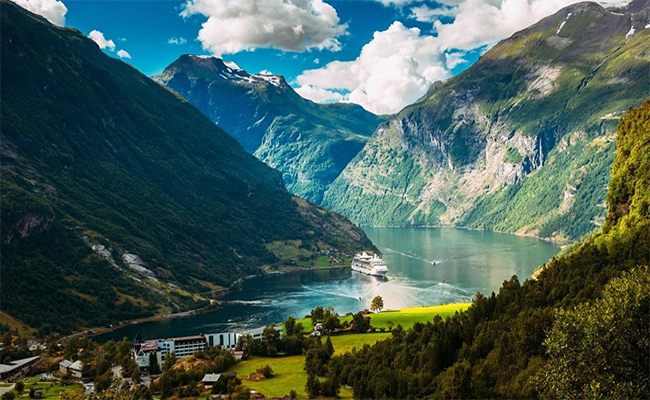 Vịnh hẹp Na Uy (Fjord) – Kỳ quan thiên nhiên của thế giới, cảnh quan ngoạn mục giữa núi tuyết và dòng nước xanh.