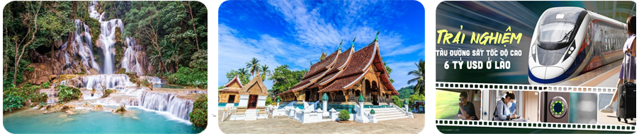 Sáng: Ăn sáng tại khách sạn. Xe và HDV đưa đoàn đến ga tàu cao tốc trải nghiệm tàu điện cao tốc đi cố đô Luang Prabang (Giờ tàu dự kiến 08:31 – 09:25). Cố đô Luang Prabang – kinh đô Phật giáo Thượng Toạ Bộ và là cố đô của đất nước Lào hiền hòa, thành lập cách đây 700 năm lịch sử. Đến cố đô, đoàn tham quan: