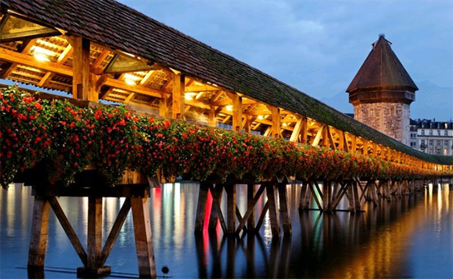 • Cầu gỗ Chapel Bridge nổi tiếng