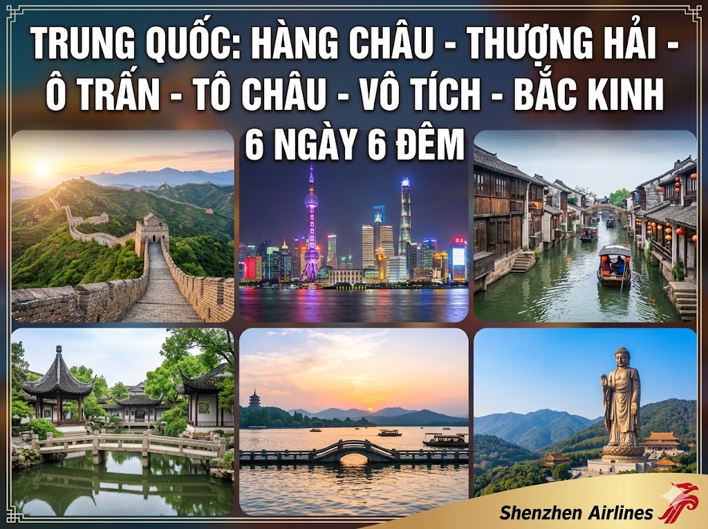 Tour Trung Quốc 6N6Đ: Hàng Châu – Thượng Hải – Ô Trấn – Tô Châu – Vô Tích – Bắc Kinh | Bay thẳng, Visa dễ, Giá tốt