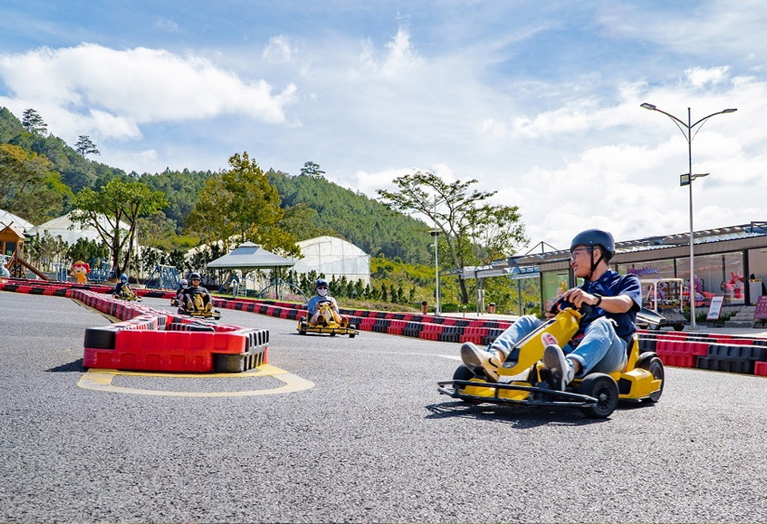 Các hoạt động vui chơi đa dạng: Đua xe Go-Kart, trượt cỏ, trượt phao khô, trượt máng cầu vồng, bắn cung,..