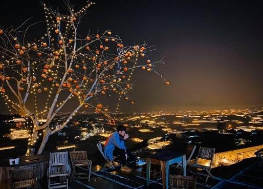 Sau bữa tối, xe đưa đoàn chiêm ngưỡng khung cảnh ‘‘Thung Lũng Đèn’’ về đêm tại quán cà phê Làng Vũ Thị và thưởng thức cốc cà phê/ca cao nóng - một trong những nơi sở hữu view ngắm thung lũng đèn ‘‘hot’’ nhất Đà Lạt. Quý khách còn có dịp được tự tay nướng và thưởng thức những củ khoai lang thơm ngon giữa tiết trời se lạnh. (chi phí nước uống tự túc)