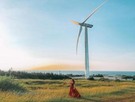 Chụp hình Phong điện, với những “chong chóng” điện gió khổng lồ, nơi sản xuất điện sạch cho người dân trên đảo.