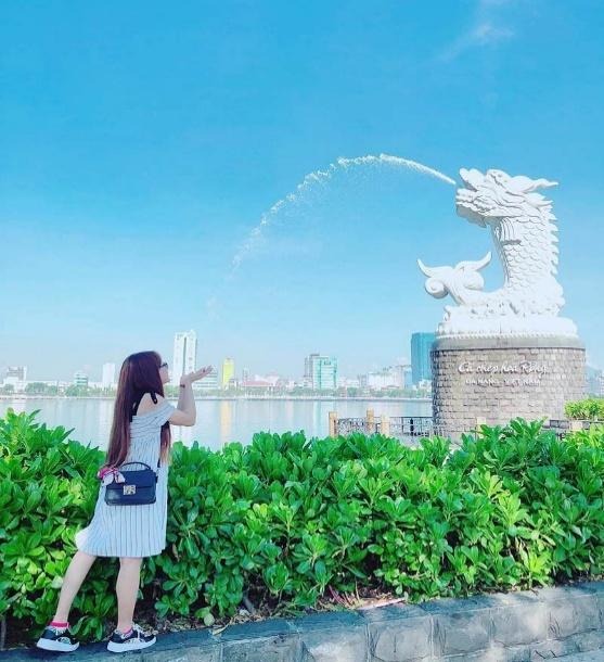 Đoàn di chuyển vòng qua Cầu Rồng lưu lại dấu ấn trên CẦU TÌNH YÊU, CÁ CHÉP HÓA RỒNG – Biểu tượng mong muốn vươn lên trong cuộc sống của người Đà Nẵng.