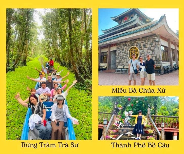theo trong hành trình Du lịch Miền Tây đó là núi Sam viếng MIẾU BÀ CHÚA XỨ, TÂY AN CỔ TỰ, LĂNG THOẠI NGỌC HẦU …Sau đó tiếp tục hành trình theo hướng Tịnh Biên dọc kênh Vĩnh Tế đi qua dãy Thất Sơn – Núi Cấm, Núi Két và những ngôi chùa Khơme có kiến trúc độc đáo. Đến huyện Nhà Bàng sau đó vào RỪNG TRÀM TRÀ SƯ. Quý khách bắt đầu tham quan hệ sinh thái rừng tràm ngập nước tuyệt đẹp vào buổi sáng theo lộ trình. Quý khách tản bộ 500m từ bãi xe vào đến bến đò sau đó đi tắc ráng (xuồng máy) khoảng 10 phút chạy dọc bờ kênh trong rừng tràm rợp mát đến trạm dừng đầu tiên. TẮC RÁNG đưa Quý khách lướt đi trên con đường độc đạo giữa rừng tràm đến trạm dừng chân tiếp theo. Tại đây Quý khách có thể lên đài quan sát ngắm toàn cảnh rừng tràm Trà Sư, đi bộ trên đường đất giữa rừng tràm săn những bức ảnh đẹp, chụp ảnh cây cầu bắt ngang qua bờ kênh. Sau đó đến khu vực nhà hàng giữa chốn thiên nhiên hoang dã được bố trí những cụm nhà sàn nhỏ giữa rừng rất lãng mạn. Tại đây Quý khách được tận mắt xem những chú chim dạn dĩ kiếm mồi trên những đám bèo màu xanh. Quý khách như gạt bỏ những điều phiền muộn của cuộc sống, tận hưởng cảm giác sảng khoái khi đi giữa thiên nhiên hoang dã tuyệt đẹp. |