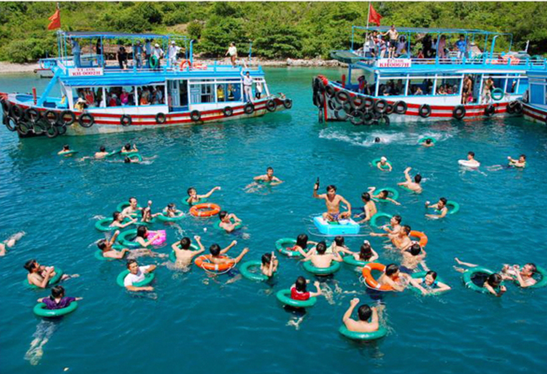 9h45 : Tàu đưa quý khách đến Vịnh San Hô, Hướng Dẫn Viên đưa quý khách về khu vực tập trung nhận chòi & ghế, nghỉ ngơi. Đoàn tự do vui chơi tắm biển, tắm hồ bơi (đã bao gồm vé sử dụng tắm nước ngọt).