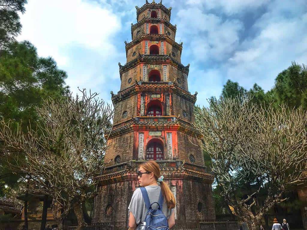 Tiếp tục tham quan Chùa Thiên Mụ, ngôi chùa cổ kính nổi tiếng bên dòng sông Hương.