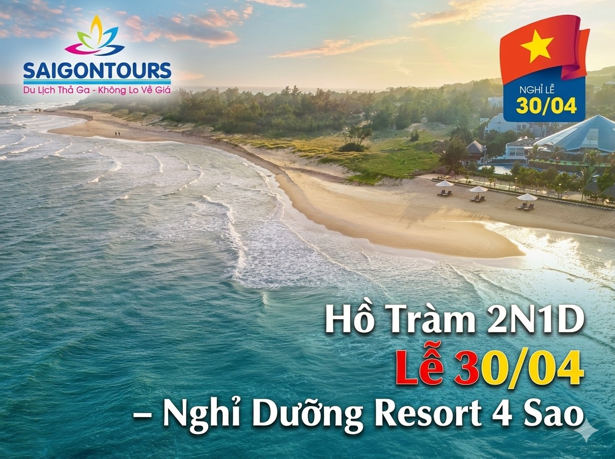 Kỳ nghỉ lễ 30/04 – 01/05 là thời điểm lý tưởng để bạn tạm rời xa nhịp sống tất bật và tìm về những không gian biển trong lành. Tour Hồ Tràm 2N1D của Saigontours mang đến hành trình nghỉ dưỡng trọn vẹn, nơi bạn được “chạm sóng biển xanh”, thư giãn tại suối khoáng nóng và tận hưởng không gian resort 4 sao đẳng cấp.