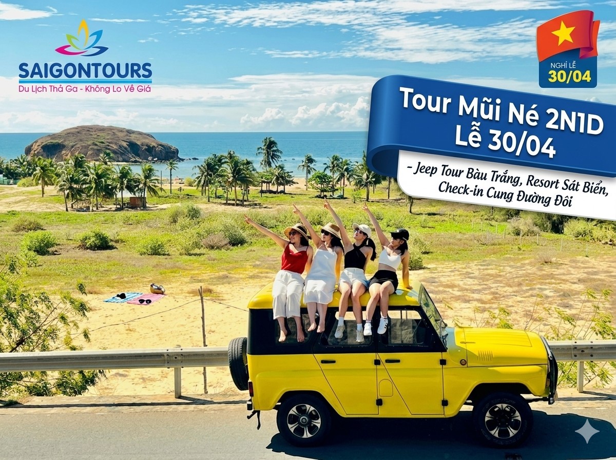 Tour Mũi Né 2N1D Jeep Tour do Saigontours thiết kế mang đến cảm giác hoàn toàn khác biệt: vừa nghỉ dưỡng tại resort sát biển, vừa chinh phục những địa danh mang đậm dấu ấn thiên nhiên và văn hóa địa phương. Đây là hành trình lý tưởng cho những ai thích khám phá, sống ảo và tận hưởng cảm giác mới lạ.