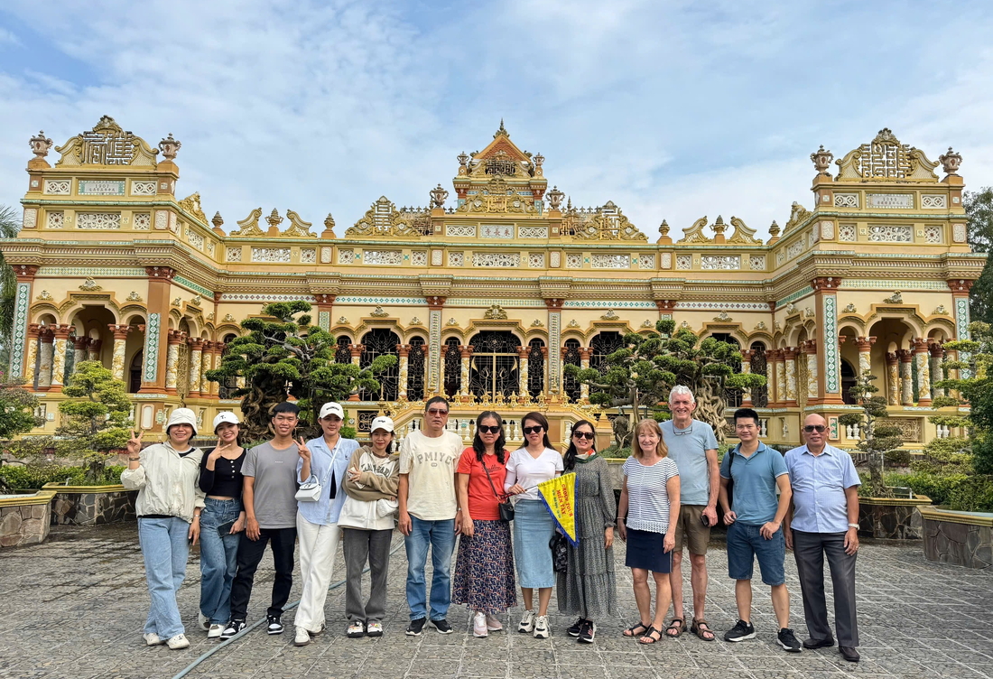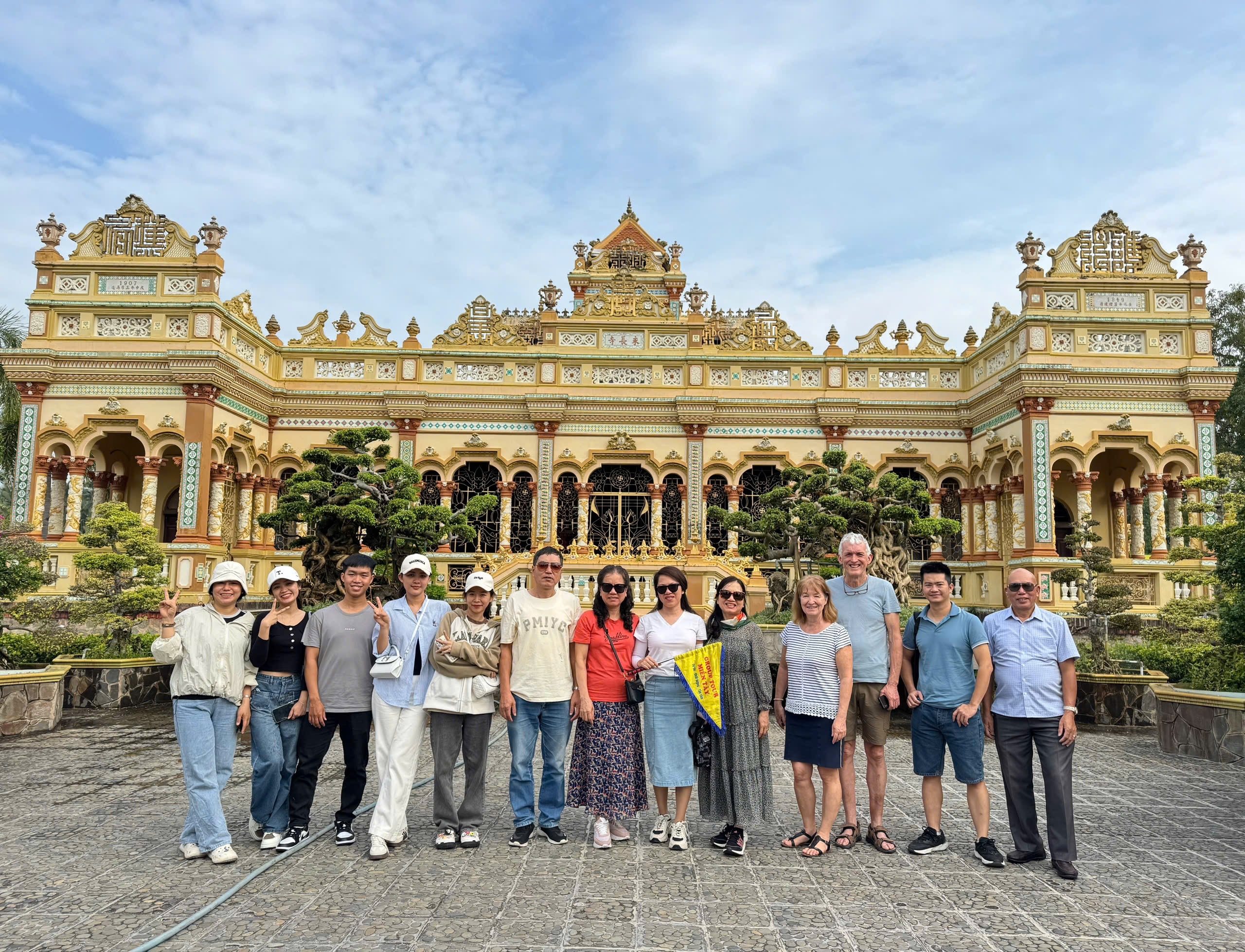 Đoàn ghé tham quan chùa Vĩnh Tràng – ngôi chùa cổ nổi tiếng với kiến trúc độc đáo. Sau đó, đến Mỹ Tho, lên tàu du ngoạn sông Tiền, ngắm nhìn bốn cù lao Long – Lân – Quy – Phụng và tìm hiểu cuộc sống nuôi cá bè của người dân địa phương.