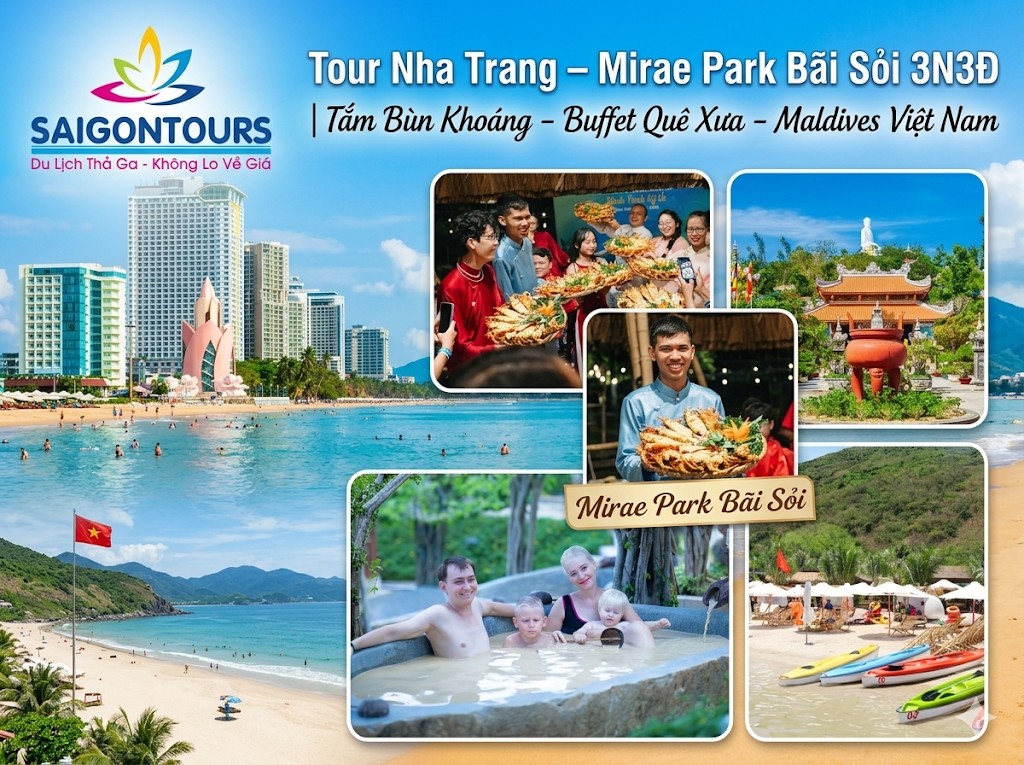 Nếu bạn đang tìm kiếm một hành trình vừa nghỉ dưỡng, vừa vui chơi, lại có những trải nghiệm “đắt giá” trong dịp lễ, thì tour Nha Trang – Mirae Park Bãi Sỏi 3N3Đ của Saigontours chính là lựa chọn hoàn hảo.